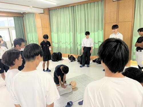 田辺高校では毎年、夏本番を迎えるこの時期に救命講習を実施しています。
