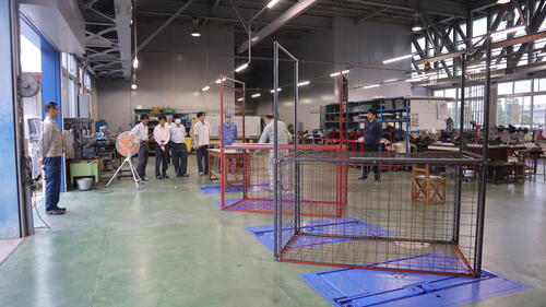 引き渡しには電気技術科と自動車科の生徒も立ち会い、京田辺市の担当者の方と、イノシシ捕獲用の檻について意見交換を行いました。生徒たちにとって、貴重な学びの機会となりました。