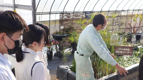10月9日(水)と10月10日(木)に、「生物」を受講している生徒たちが、ビオトープ作成に向けたフィールドワークを行いました。杜若園芸さんにて、ビオトープ作成の基礎や水草の種類を理解し、積極的に質問をしながら学びを深めました。今回得た知識や経験を生かし、ビオトープを作成していく予定です。
