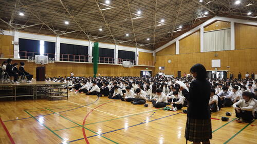 前期生徒会役員は文化祭で「のど自慢大会」、体育祭では「デカパン競争」を企画し、積極的に田辺高校祭を盛り上げてくれました。そんな前期役員に影響を受け、立候補した生徒も多くいました。