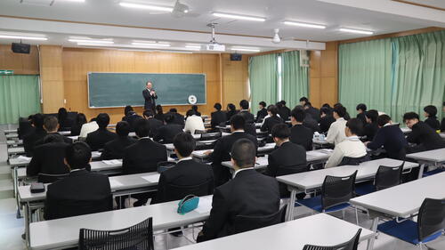 大学、就職、公務員、看護系、専門学校に分かれ、さまざまな分野の講師の方から説明を聴きました。希望する進路の実現に向けて、真剣に取り組むことができました。