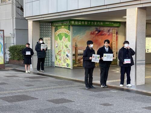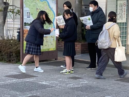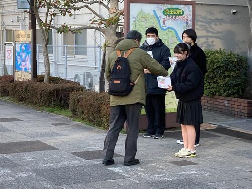 2月9日の朝、近鉄新田辺駅西口において本校生徒が募金活動を行いました。